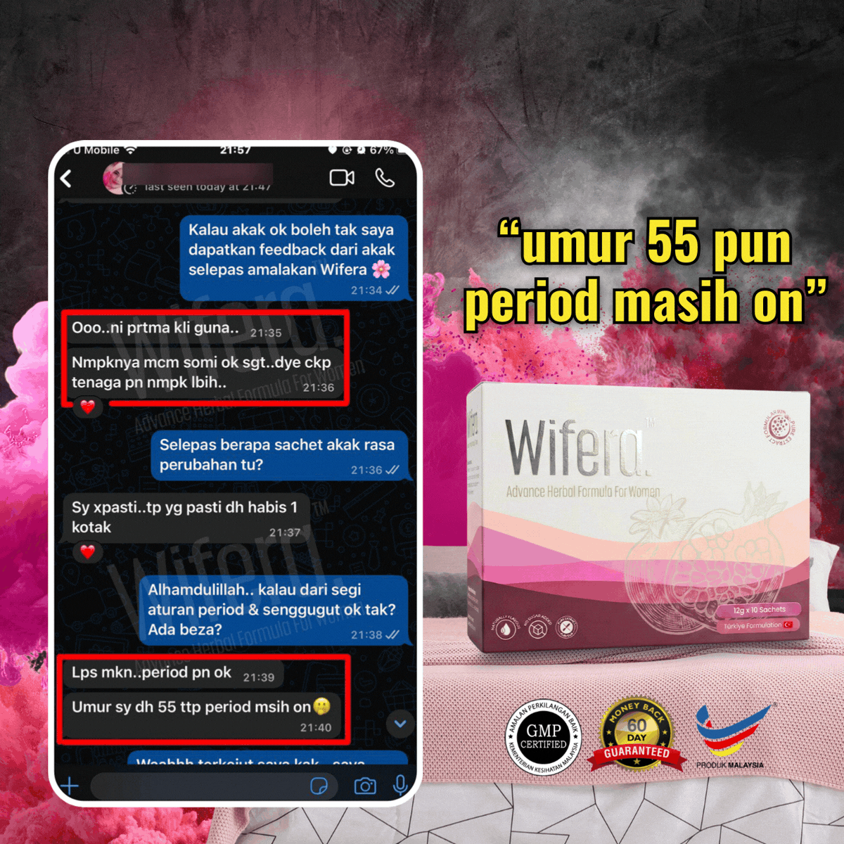 WIFERA diformulasikan untuk membantu menyokong wanita yang mengalami perubahan hormon termasuk fasa pre-menopause dan menopause.